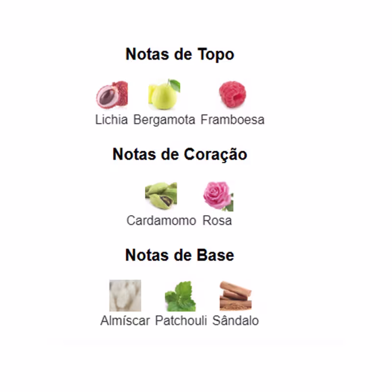 O frasco do perfume é uma verdadeira joia, com linhas elegantes e um líquido que transmite a pureza e a beleza da fragrância. A embalagem é uma fusão de romantismo e modernidade, indicando que esta é uma fragrância feita para mulheres que desejam realçar sua beleza natural com um toque de suavidade.