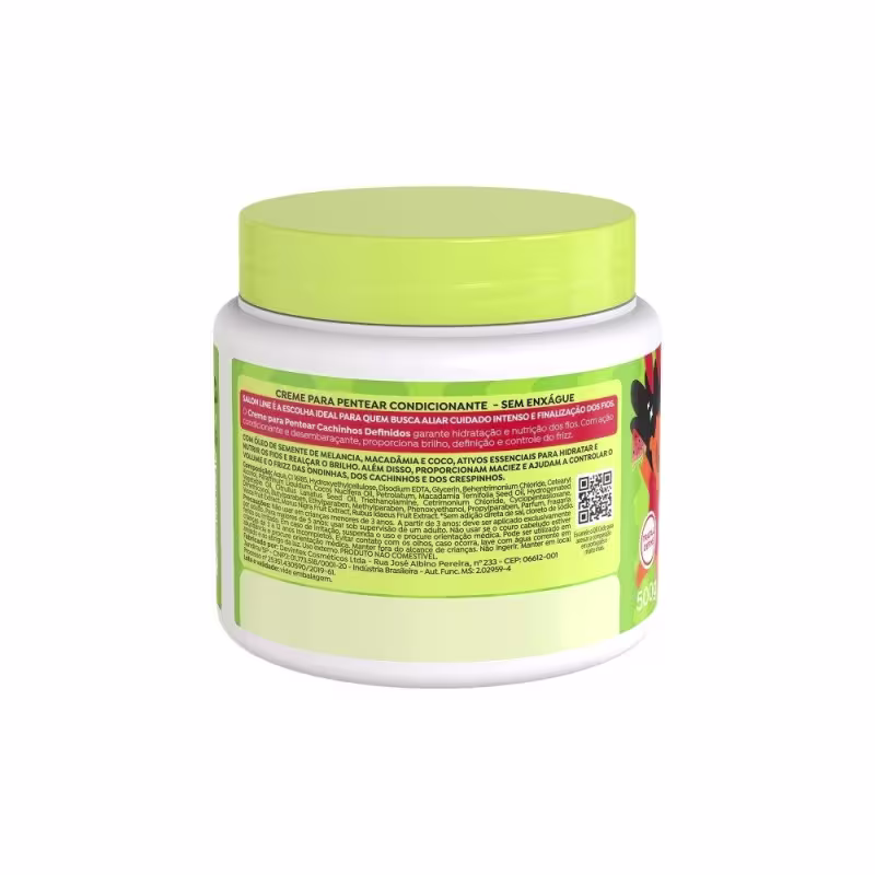 Sua fórmula possui óleo de semente de melancia e aloe vera. Com óleo de semente de melancia, macadâmia e coco, ativos essenciais para hidratar e nutrir os fios e realçar o brilho. Além disso, proporcionam maciez e ajudam a controlar o volume e o frizz das ondinhas, dos cachinhos e dos crespinhos.