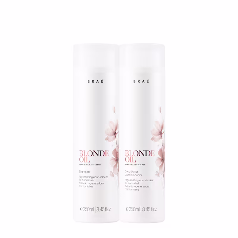 Braé Blonde Oil by Ana Paula Siebert - Shampoo 250ml: limpa suavemente. Com óleo de argan, macadâmia e lino, que promovem nutrição, proteção da cor e controle do frizz. Proporciona maciez, hidratação, brilho e cabelos fortalecidos.