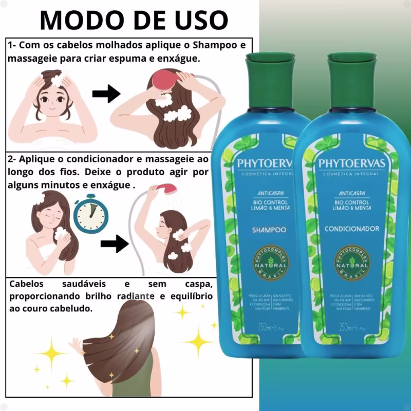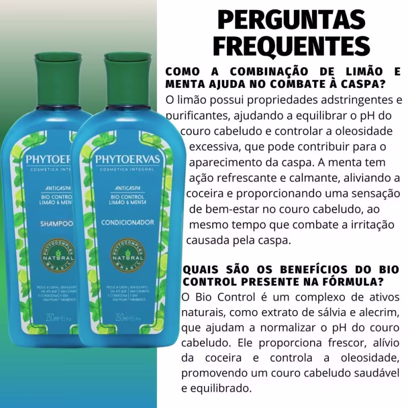 Kit Phytoervas Anticaspa Bio Control Limão E Menta: Shampoo e Condicionador 250ml