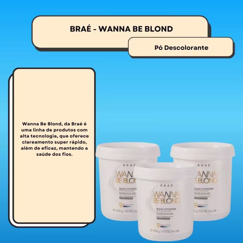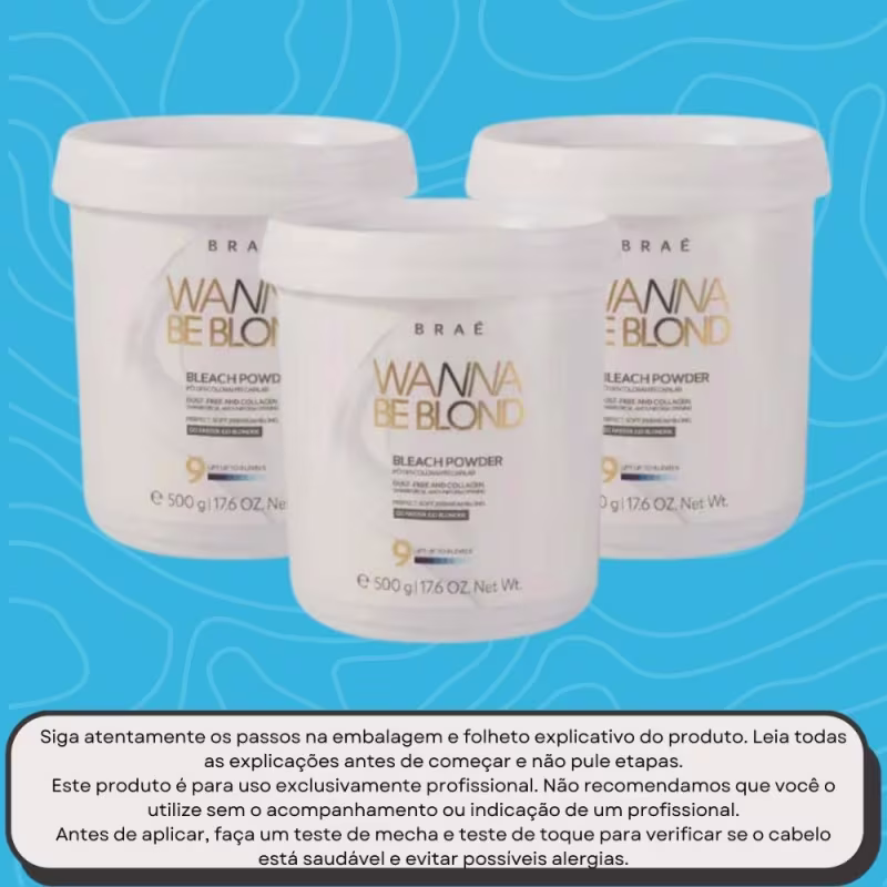 O Pó Descolorante Braé Wanna Be Blond possui fórmula rica em colágeno que preserva o fio, para que você conquiste tons altos sem abrir mão da saúde do fio. Ainda conta com tecnologia que proporciona um cabelo macio, com brilho e maleável após a descoloração. Ideal para clareamentos completos ou mechas pontuais.
