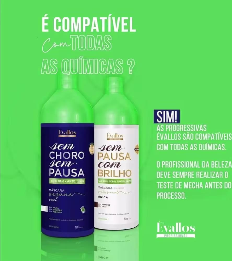 Com a Evallos Sem Choro Sem Pausa, você tem praticidade e rapidez nos processos de alisamento e o melhor de tudo, ela é livre de formol 0%. Alinha 100% os fios, sem o uso de Shampoo. O principal diferencial dessa progressiva sem formol, é que ela não tem o tempo de pausa que normalmente é de 60min á 90min...