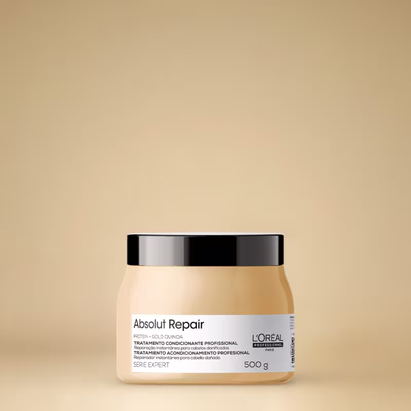 L'Oréal Professionnel Serie Expert Absolut Repair Gold Quinoa Protein - Máscara Capilar 500ml: repara a fibra capilar completamente fragilizando, conferindo uma aparência luminosa e saudável.