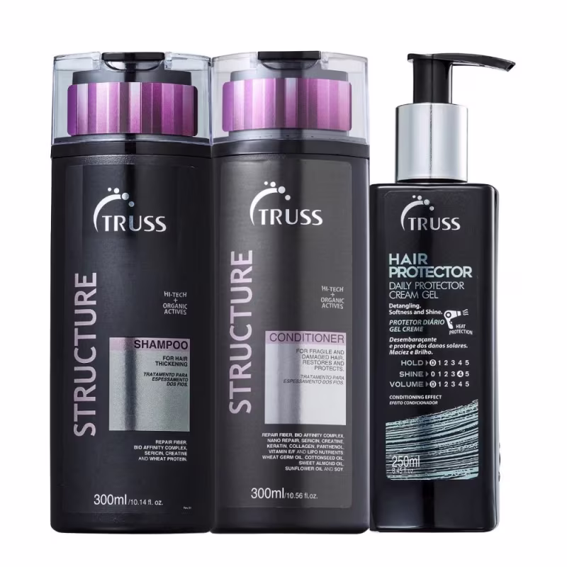 Kit Truss Structure - Shampoo 300ml + Condicionador 300ml + Hair Protector 250ml - Proteção Completa e Cabelos Fortes!