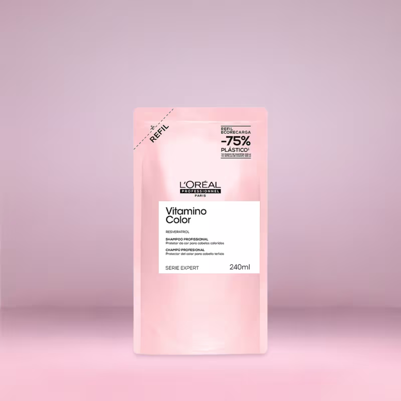 L'Oréal Professionnel Serie Expert Vitamino Color Resveratrol Refil - Shampoo 240ml: com fórmula antioxidante, evita os danos do dia a dia e o desbotamento. Enriquecido com Resveratrol, ajuda a restaurar e proteger contra os radicais livres, agentes oxidantes e os raios UV. Resulta em um cabelo com a cor vibrante e protegida por mais tempo.