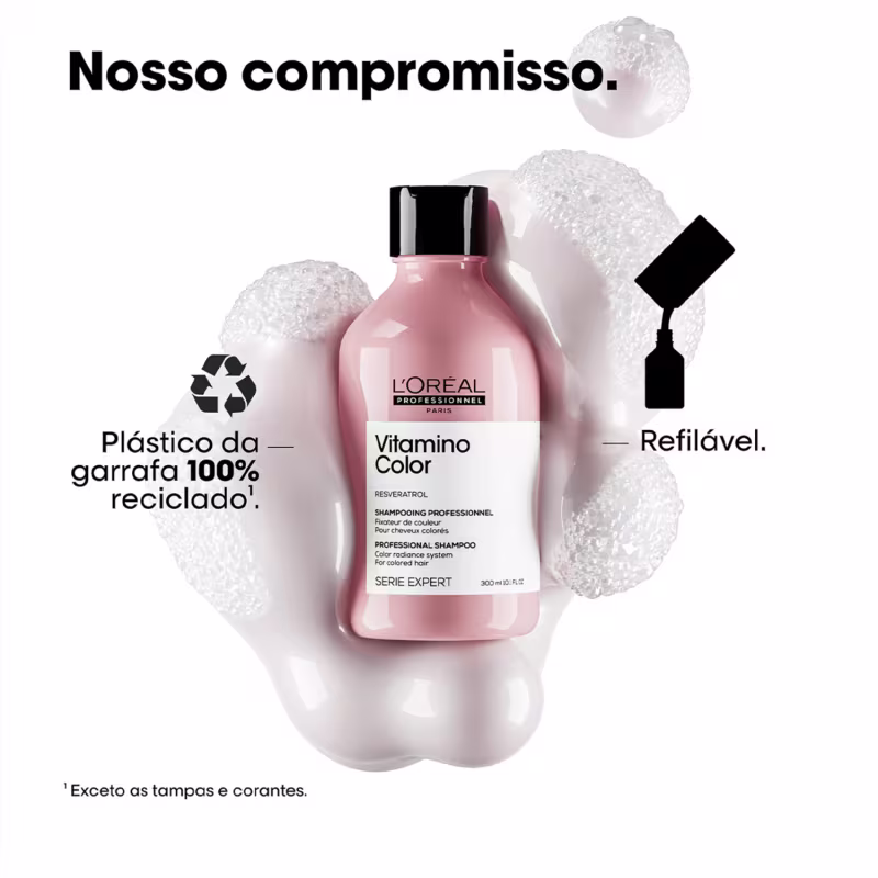 L'Oréal Professionnel Serie Expert Vitamino Color Resveratrol - Shampoo 300ml: com fórmula antioxidante, evita os danos do dia a dia e o desbotamento. Enriquecido com Resveratrol, ajuda a restaurar e proteger contra os radicais livres, agentes oxidantes e os raios UV. Resulta em um cabelo com a cor vibrante e protegida por mais tempo.