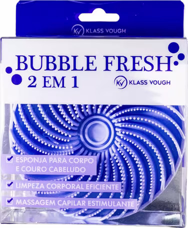 Experimente a sensação de um banho completo e relaxante com a Esponja de Silicone para Banho e Couro Cabeludo - Bubble Fresh 2 em 1 - Klass Vough!