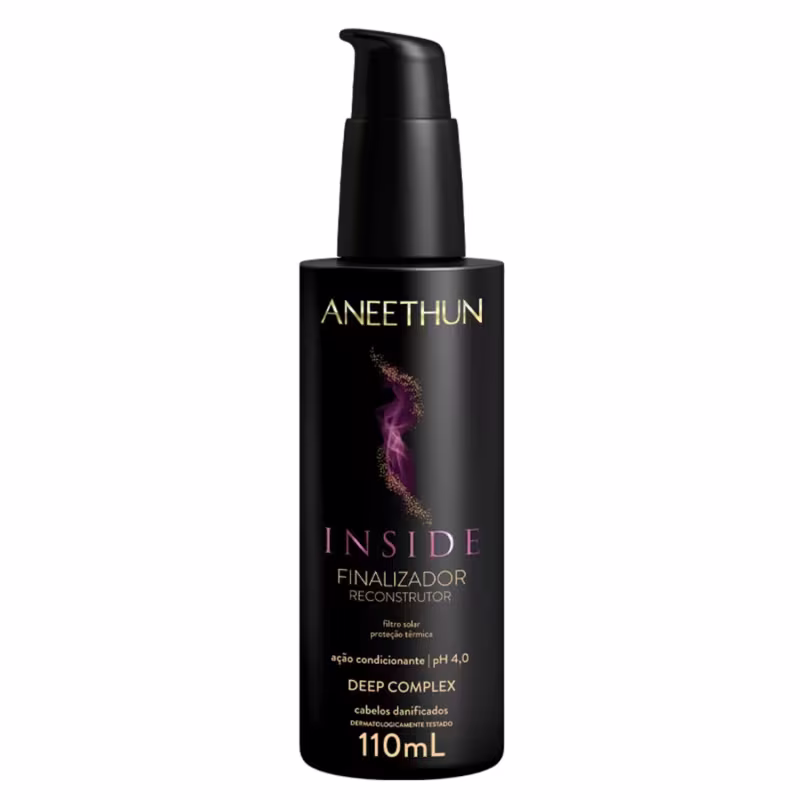 Finalizador Capilar Aneethun Inside (110ml): O toque final para um cabelo impecável! Este finalizador multifuncional protege contra agressões externas (calor, umidade, poluição), controla o frizz, facilita o desembaraço e intensifica o brilho, deixando seus cabelos macios, leves e perfumados por mais tempo.