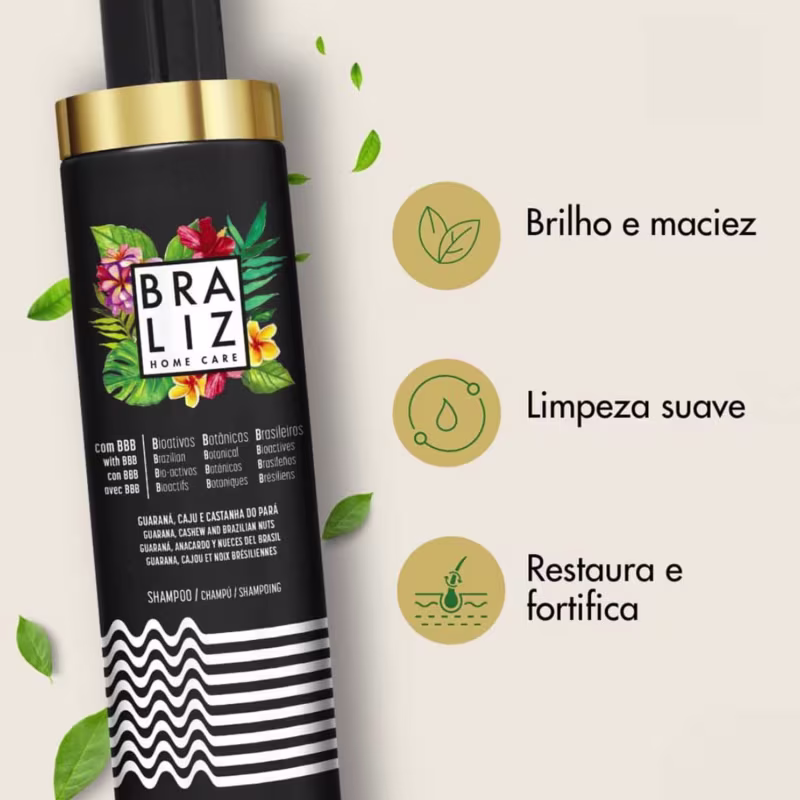 Transforme sua rotina de cuidados capilares com o Braliz Shampoo Home Care com Bioativos Botanicos.