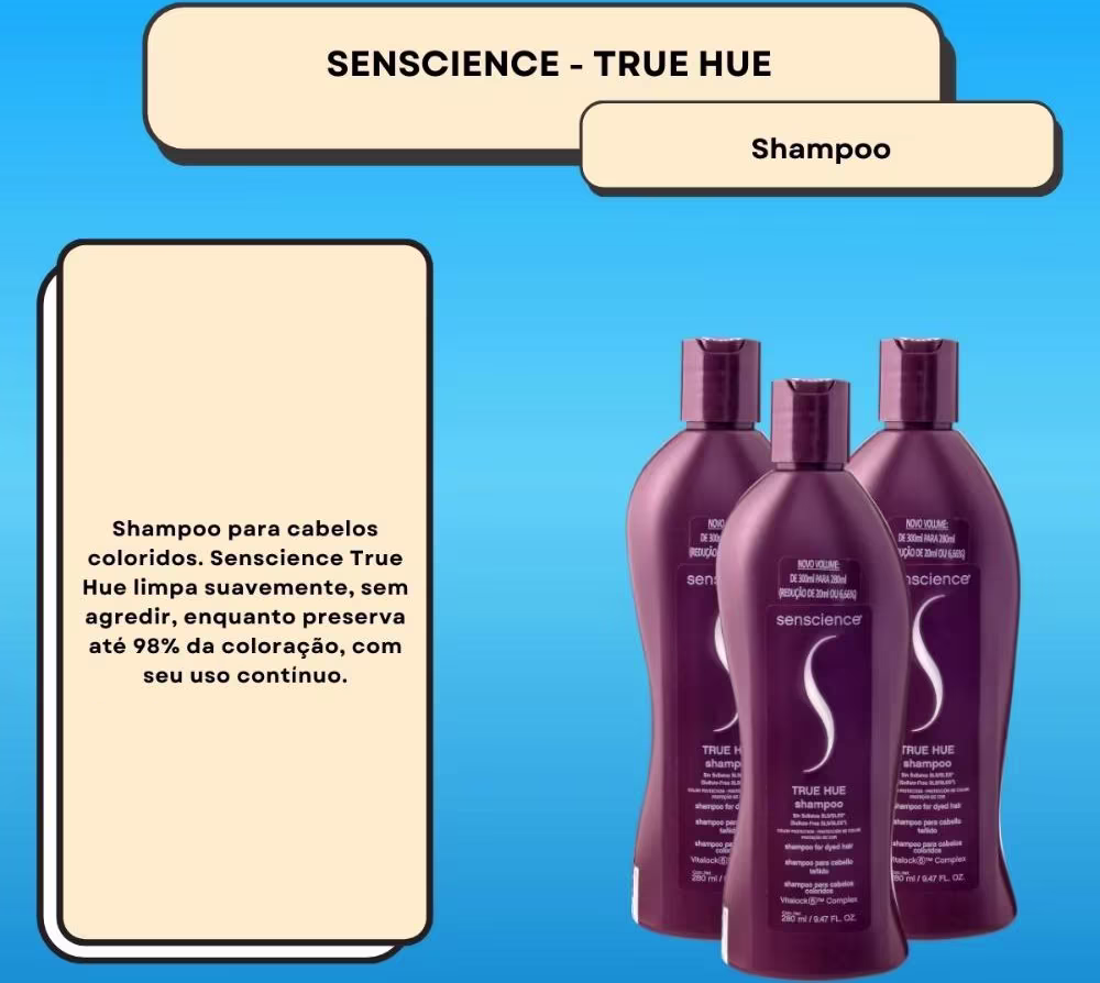 03 unidade Senscience True Hue Sulfato Kit 3 Shampoo 280ml