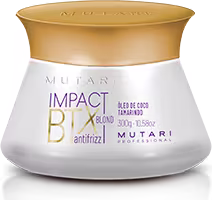 Modo de uso:Lave os cabelos com o shampoo Mutari indicado para seu tipo de cabelo. Com os cabelos úmidos, aplique o IMPACT BTX Blond Antifrizz mecha a mecha, espalhando bem o produto e mantendo a distância de 0,5 cm do couro cabeludo. Deixe agir por 30 minutos. Enxágue completamente. Aplique o Reconstrutor Stop Flash SOS Louros. Escove e pranche em mechas finas, realizando de 5 a 10 passagens por mecha (de acordo com o tipo de cabelo). A temperatura da prancha deve ser de 180°C a 200°C.