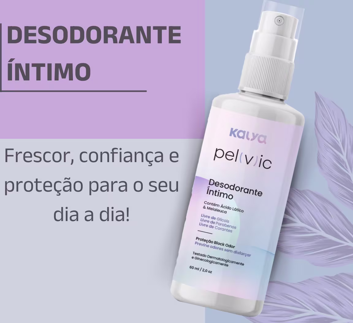 O Desodorante Íntimo Pelvic foi desenvolvido para manter a região íntima protegida contra odores indesejados e proporcionando uma sensação de frescor e bem-estar ao longo do dia. Pelvic Desodorante Íntimo é para mulheres que sofrem com desconforto do suor na região íntima externa, virilhas, embaixo dos seios e axilas. Sua fórmula contém ingredientes naturais garantindo proteção prolongada sem irritação ou ressecamento da pele. E tudo isso dentro de uma embalagem em spray, prática para uso e transporte.