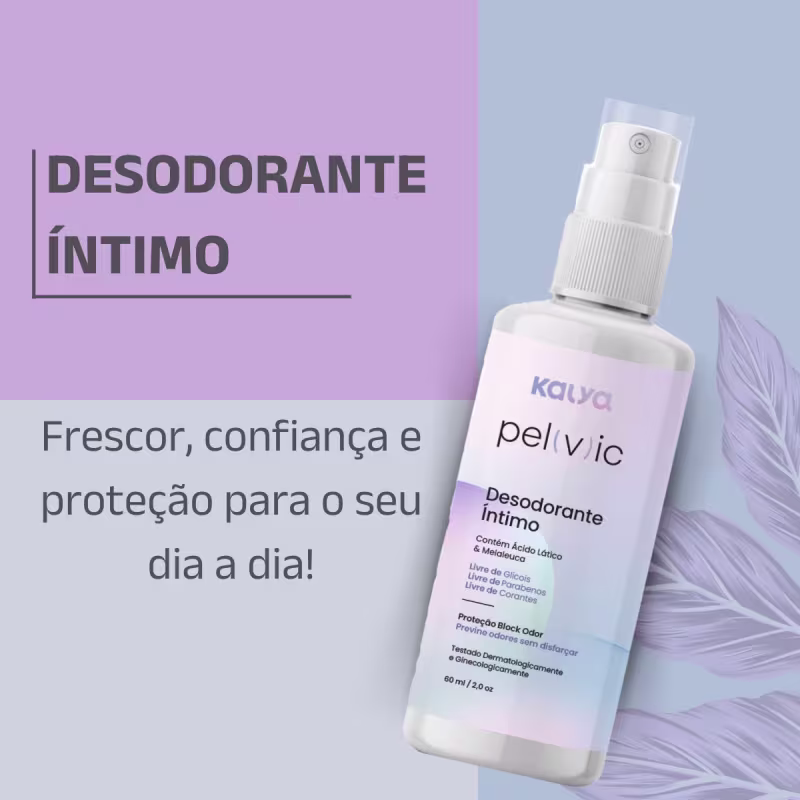 O Desodorante Íntimo Pelvic foi desenvolvido para manter a região íntima protegida contra odores indesejados e proporcionando uma sensação de frescor e bem-estar ao longo do dia. Pelvic Desodorante Íntimo é para mulheres que sofrem com desconforto do suor na região íntima externa, virilhas, embaixo dos seios e axilas. Sua fórmula contém ingredientes naturais garantindo proteção prolongada sem irritação ou ressecamento da pele. E tudo isso dentro de uma embalagem em spray, prática para uso e transporte.