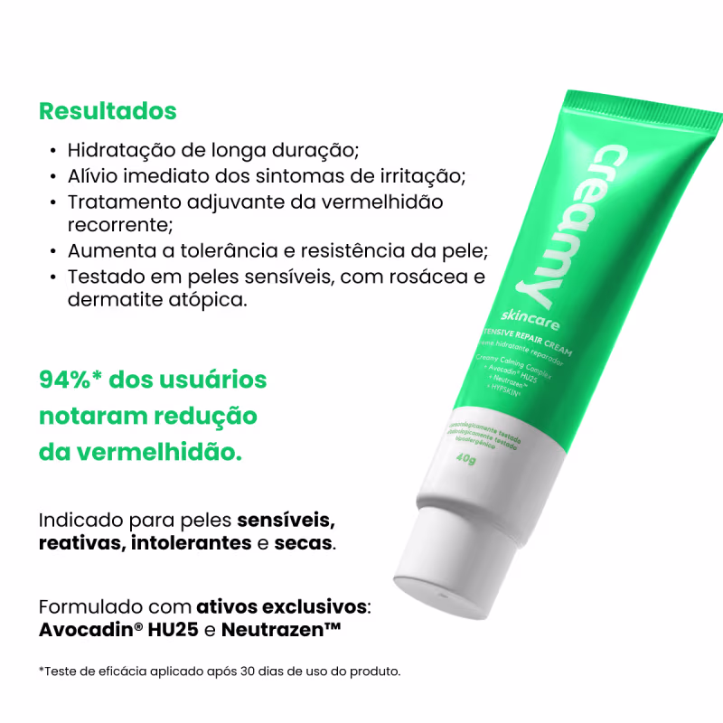 O uso contínuo do Intensive Cream auxilia no equilíbrio das sensações recorrentes da pele sensível.