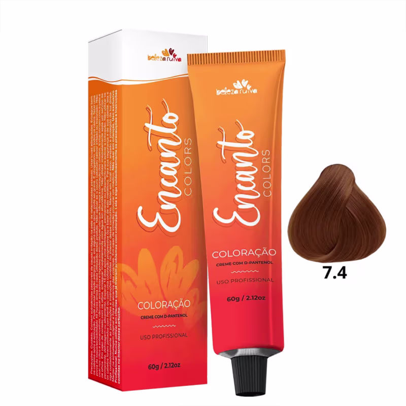 • 01 Beleza Ruiva Coloração Encanto Colors 7.4 Louro Médio Cobre - 60g