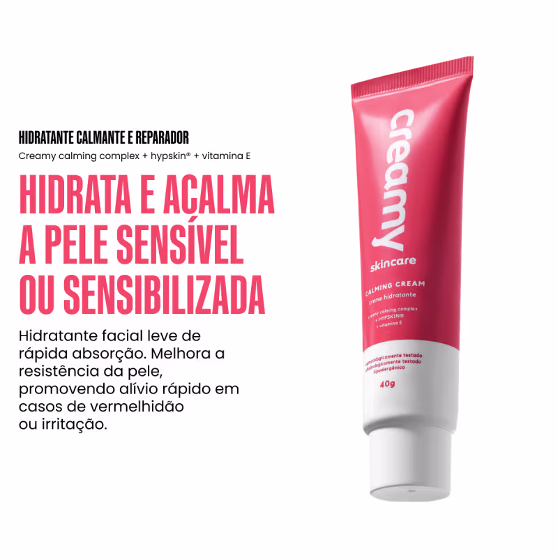 Principais ativos: creamy calming complex + hypskin® + vitamina E + alfa-bisabolol.