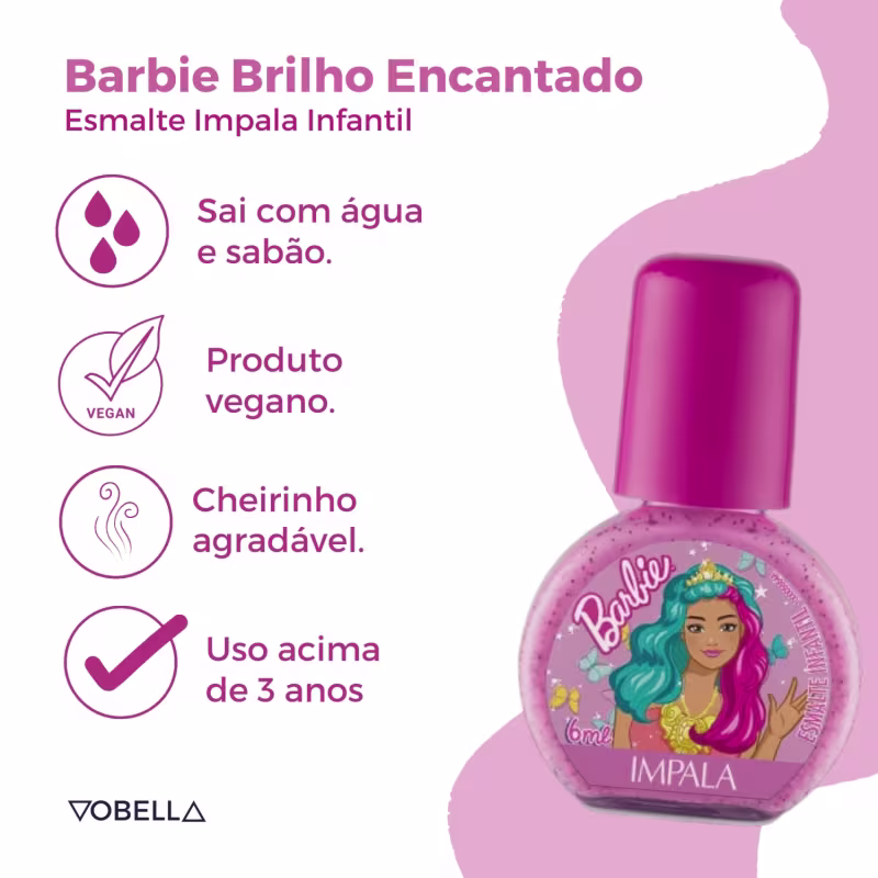- Esmalte Impala Infantil Kids Barbie Brilho Encantado Glitter.