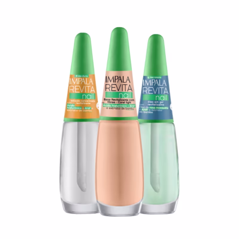 O Kit 1 Base Coral + Solução Concentrada + Óleo em Gel Impala oferece um tratamento completo para suas unhas, proporcionando nutrição, fortalecimento e brilho impecável. Com esse kit, você terá tudo o que precisa para garantir unhas saudáveis, protegidas e com um acabamento profission