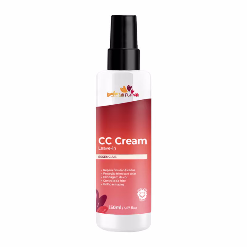 Beleza Ruiva CC Cream Essenciais, é um Leave-in multifuncional que conta com uma fórmula que protege a cor, repara os fios danificados e garante maior durabilidade dos tratamentos.