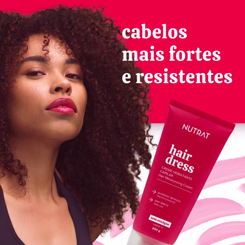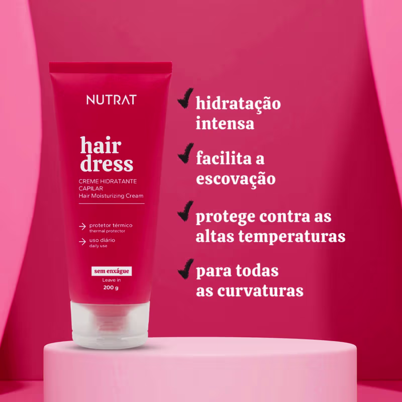 O Hair Dress é um superprotetor térmico para escovação que vai transformar o cuidado com seus cabelos! Com sua poderosa barreira de proteção, você nunca mais precisará se preocupar com os danos causados pelo excesso de calor dos aparelhos térmicos. Adeus aos fios ressecados e quebradiços!
