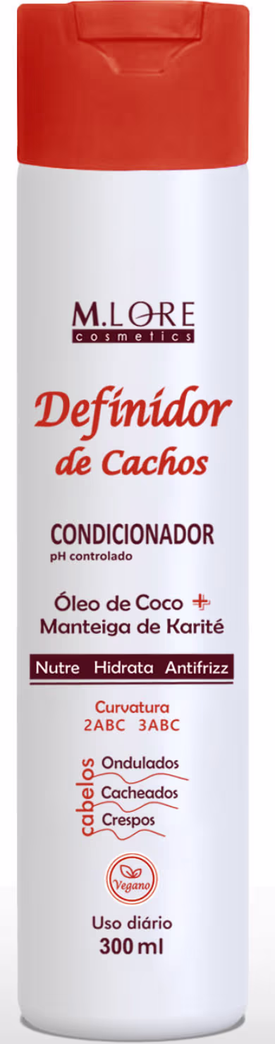 M.lore Cosmetics. Condicionador Uso Diário. A linha Definidor de Cachos, foi desenvolvida para garantir hidratação e sedosidade aos fios, fazendo com que os cabelos cacheados, ondulados ou crespos, se mantenham bonitos e com definição por muito mais tempo.
