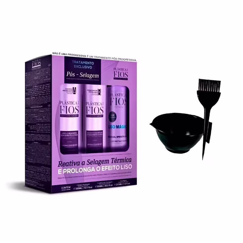 Com Óleo de Açaí e Arginina. Possui PH ácido. Hidrata intensamente e disciplina os fios, prolongando o efeito liso. O shampoo Pós Selagem Térmica limpa suavemente reduzindo o frizz sem provocar o ressecamento dos fios. Enquanto que o condicionador Pós Selagem Térmica promove hidratação profunda e disciplina dos fios.