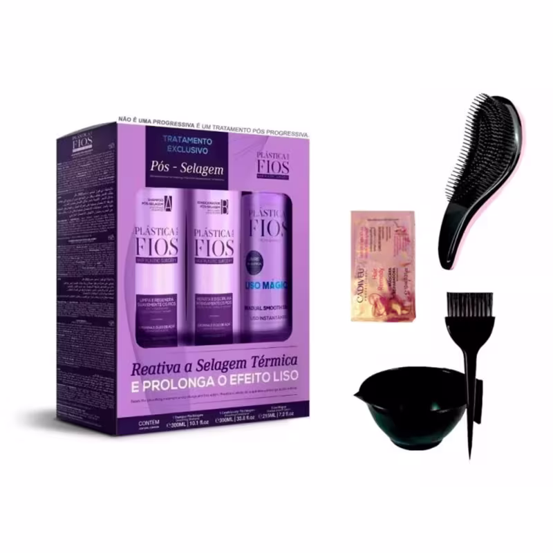 Com Óleo de Açaí e Arginina. Possui PH ácido. Hidrata intensamente e disciplina os fios, prolongando o efeito liso. O shampoo Pós Selagem Térmica limpa suavemente reduzindo o frizz sem provocar o ressecamento dos fios. Enquanto que o condicionador Pós Selagem Térmica promove hidratação profunda e disciplina dos fios.