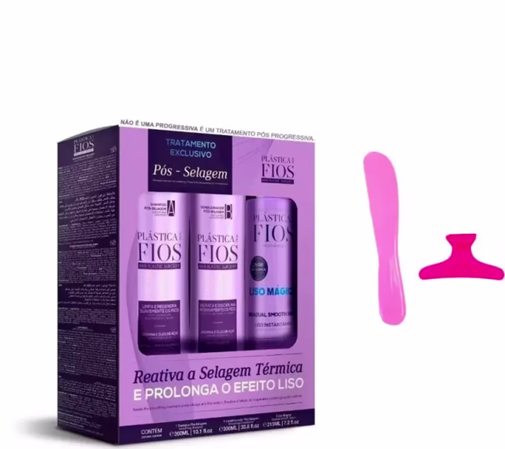 Com Óleo de Açaí e Arginina. Possui PH ácido. Hidrata intensamente e disciplina os fios, prolongando o efeito liso. O shampoo Pós Selagem Térmica limpa suavemente reduzindo o frizz sem provocar o ressecamento dos fios. Enquanto que o condicionador Pós Selagem Térmica promove hidratação profunda e disciplina dos fios.