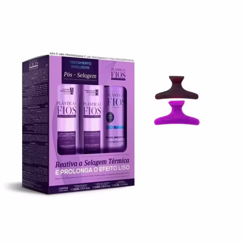 Com Óleo de Açaí e Arginina. Possui PH ácido. Hidrata intensamente e disciplina os fios, prolongando o efeito liso. O shampoo Pós Selagem Térmica limpa suavemente reduzindo o frizz sem provocar o ressecamento dos fios. Enquanto que o condicionador Pós Selagem Térmica promove hidratação profunda e disciplina dos fios.