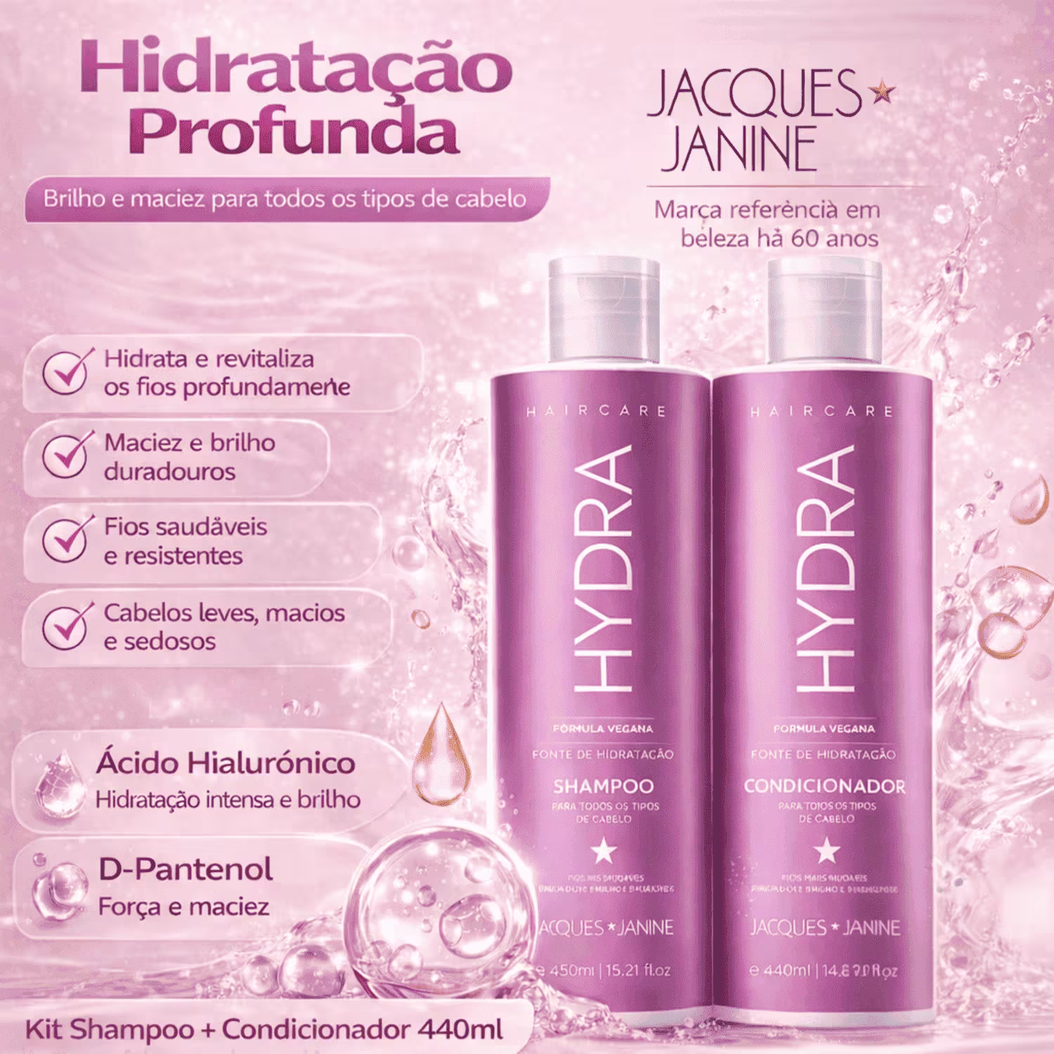JACQUES JANINE - Kit HYDRA Shampoo 450ml + Condicionador 440ml - Força & Hidratação Profunda