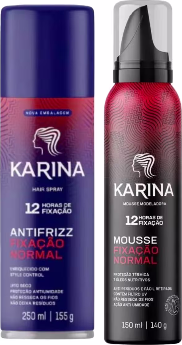 Kit Spray de Fixador e Mousse Fixador Os Hair Sprays Karina são os fixadores queridinhos das consumidoras.