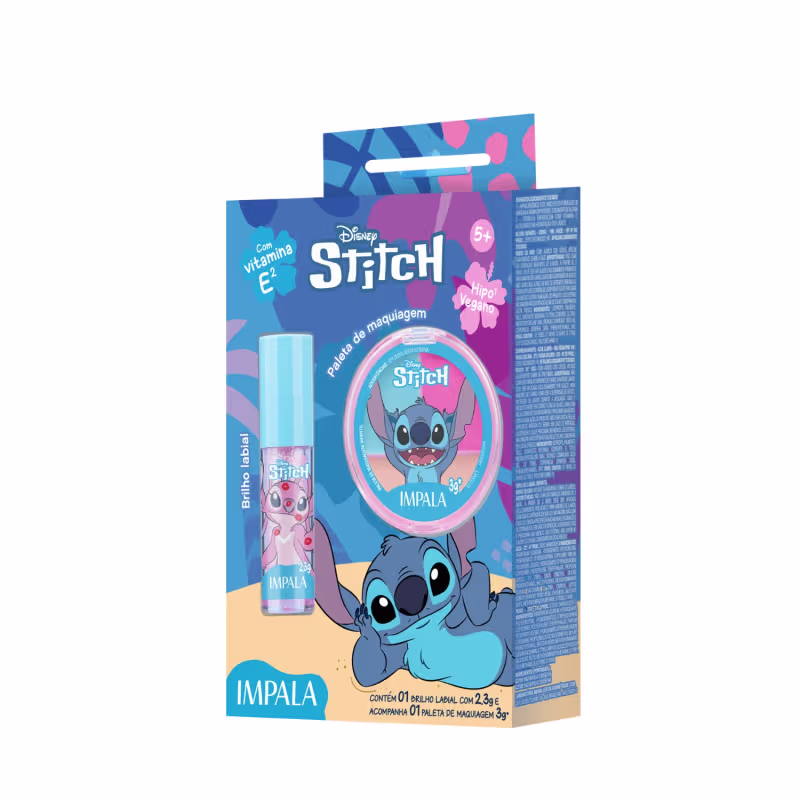 Que tal transformar a brincadeira em um momento mágico com o Stitch? O Kit Paleta Maquiagem E Brilho Labial Angel Infantil Impala é a escolha perfeita para as pequenas que amam se divertir com estilo, brilho e segurança! Com produtos inspirados no personagem mais fofo do universo Disney, essa experiência vai encantar do começo ao fim!