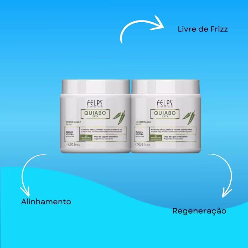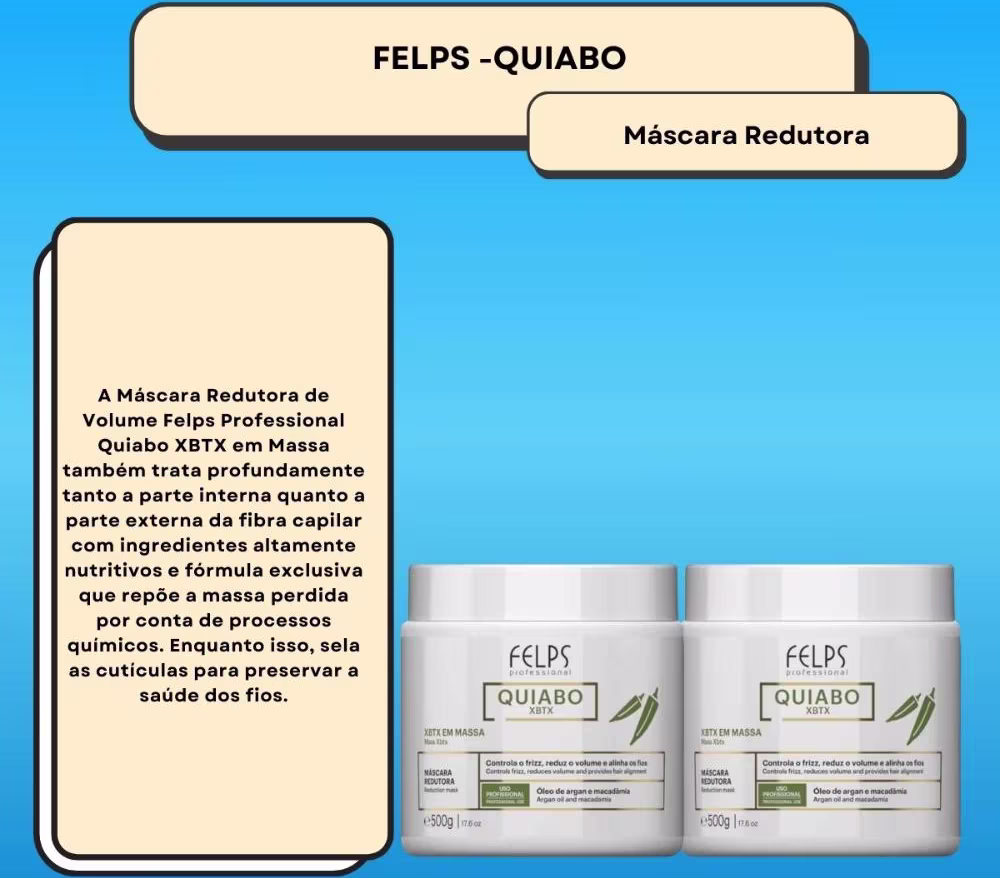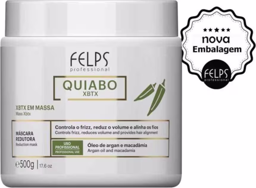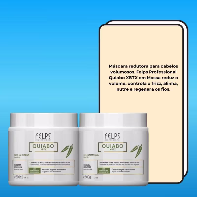 - Máscara redutora de volume para cabelos volumosos e com frizz. Felps Professional XBTX de Okra Máscara Redutora alinha e fortalece a fibra capilar ao mesmo tempo. Assim, garante disciplina, efeito liso e restauração da estrutura do fio.