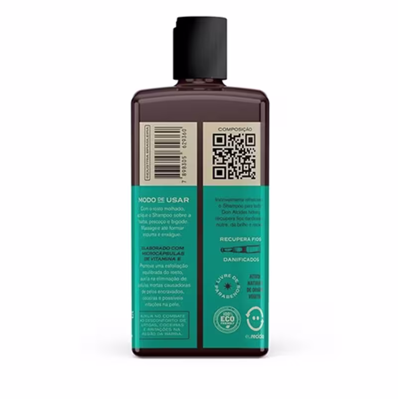 Não sei o CEPO Shampoo para Barba e Bigode Don Alcides foi desenvolvido para nobres cavalheiros. Elaborado com cápsulas de Vitamina E para esfoliação, promovem uma limpeza profunda da barba e pele, desobstruindo os poros causadores de cravos e pêlos encravados, estimulando a circulação sanguínea da região promovendo o crescimento saudável das madeixas faciais.
