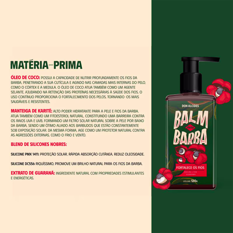 O Balm para Barba Don Alcides Guaraná não é apenas uma novidade, é uma celebração da biodiversidade brasileira, uma ode à força e beleza da nossa terra!