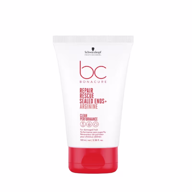 Schwarzkopf BC Repair Rescue Sealed Ends (100ml): Um creme selador de pontas duplas que nutre intensamente, previne a quebra e sela as cutículas, proporcionando um acabamento suave e sem frizz.