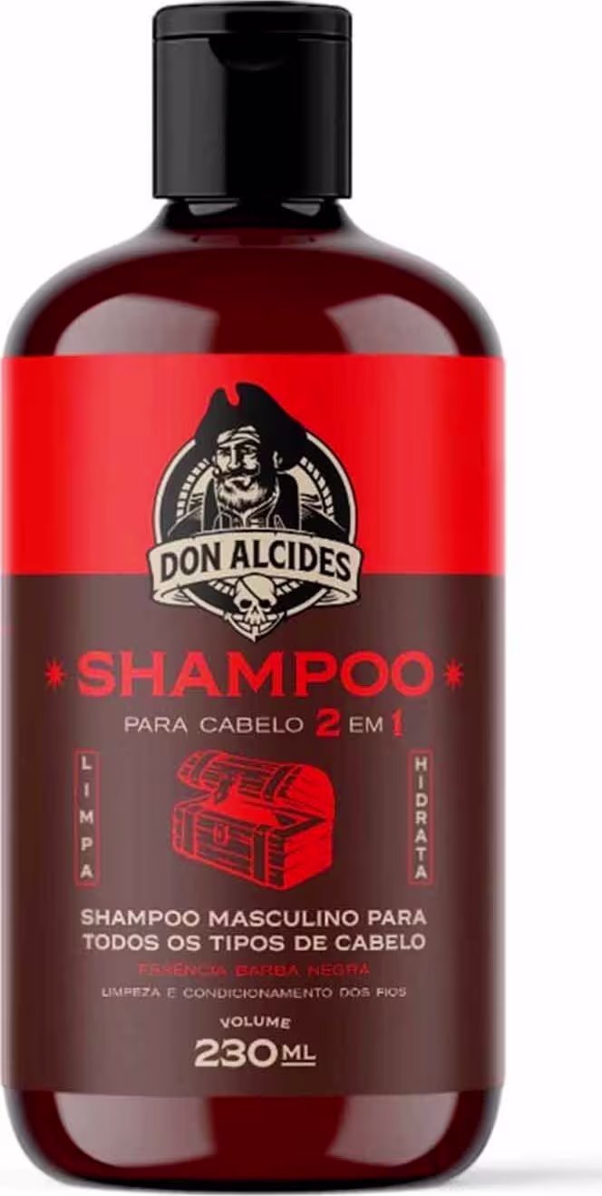 O Shampoo para cabelo masculino 2 em 1 Don Alcides Barba Negra promove uma sensação refrescante durante o banho, energiza o couro cabeludo e a pele.