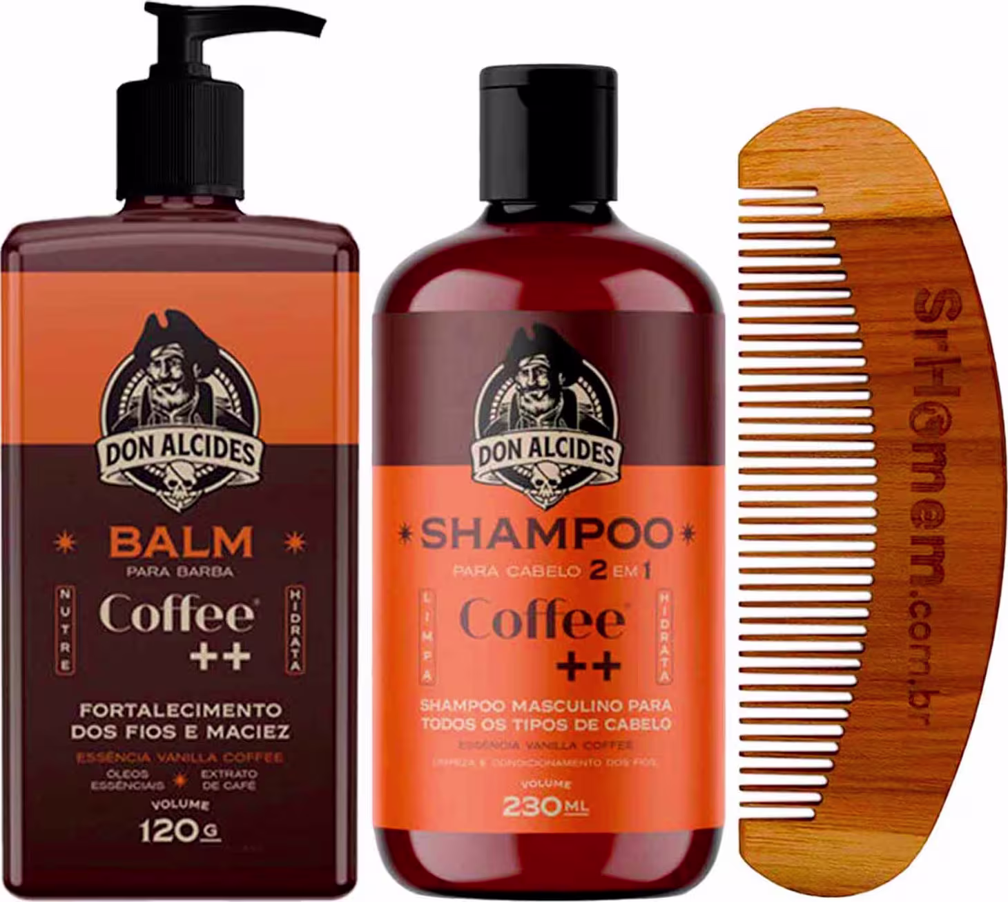 Kit Balm Barba Shampoo Cabelo Pente Curvo Coffee Don Alcides Ver mais ❯