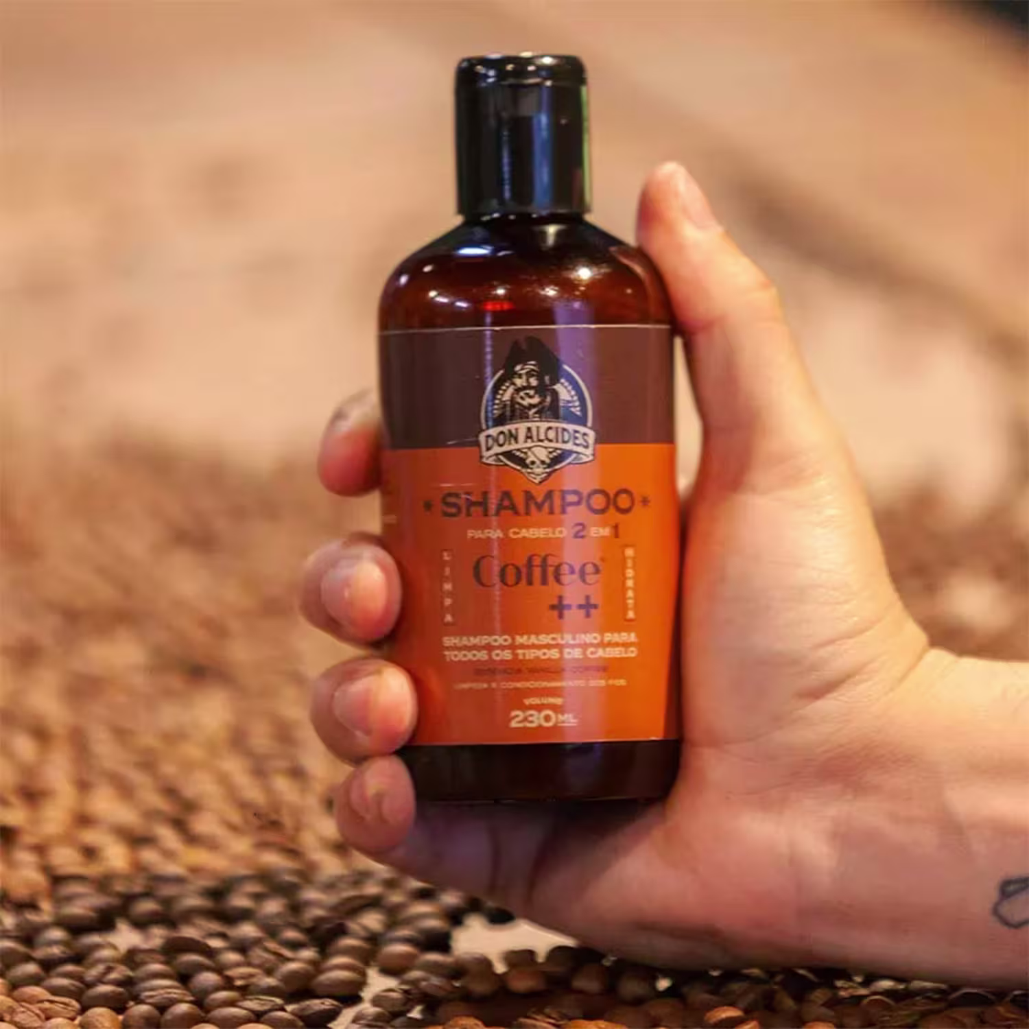 O Shampoo para cabelo 2 em 1 Don Alcides Coffee ++ promove uma sensação refrescante durante o banho, energiza o couro cabeludo e a pele.