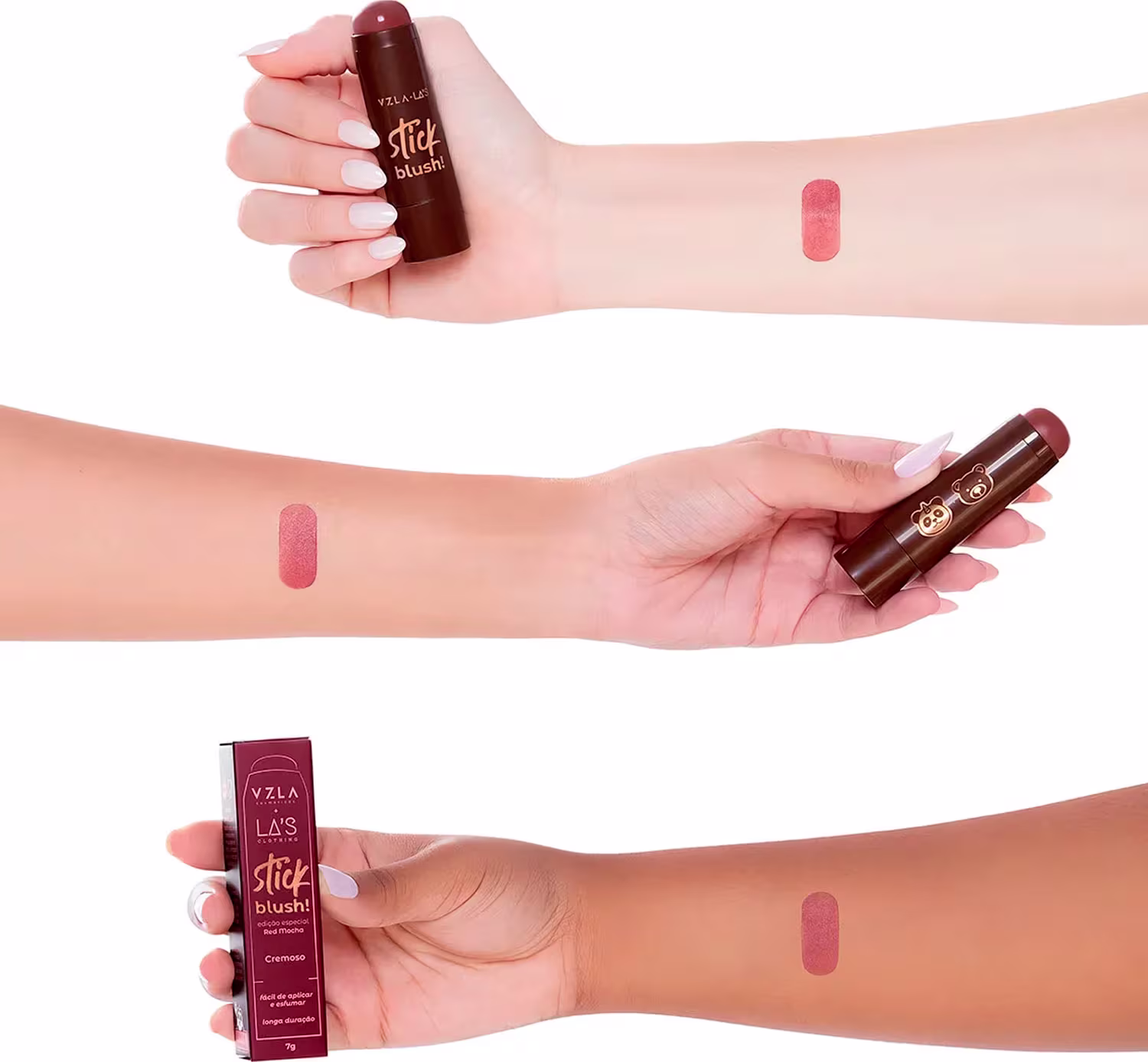 O Blush Stick Red Mocha é resultado de uma collab incrível entre a Vizzela e a La's Clothing, unindo o melhor da moda com a beleza!