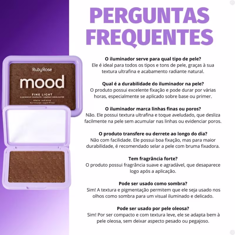 Não sei o CEPIluminador Compacto Ruby Rose Mood Fine Light Efeito Radiante Mlf02