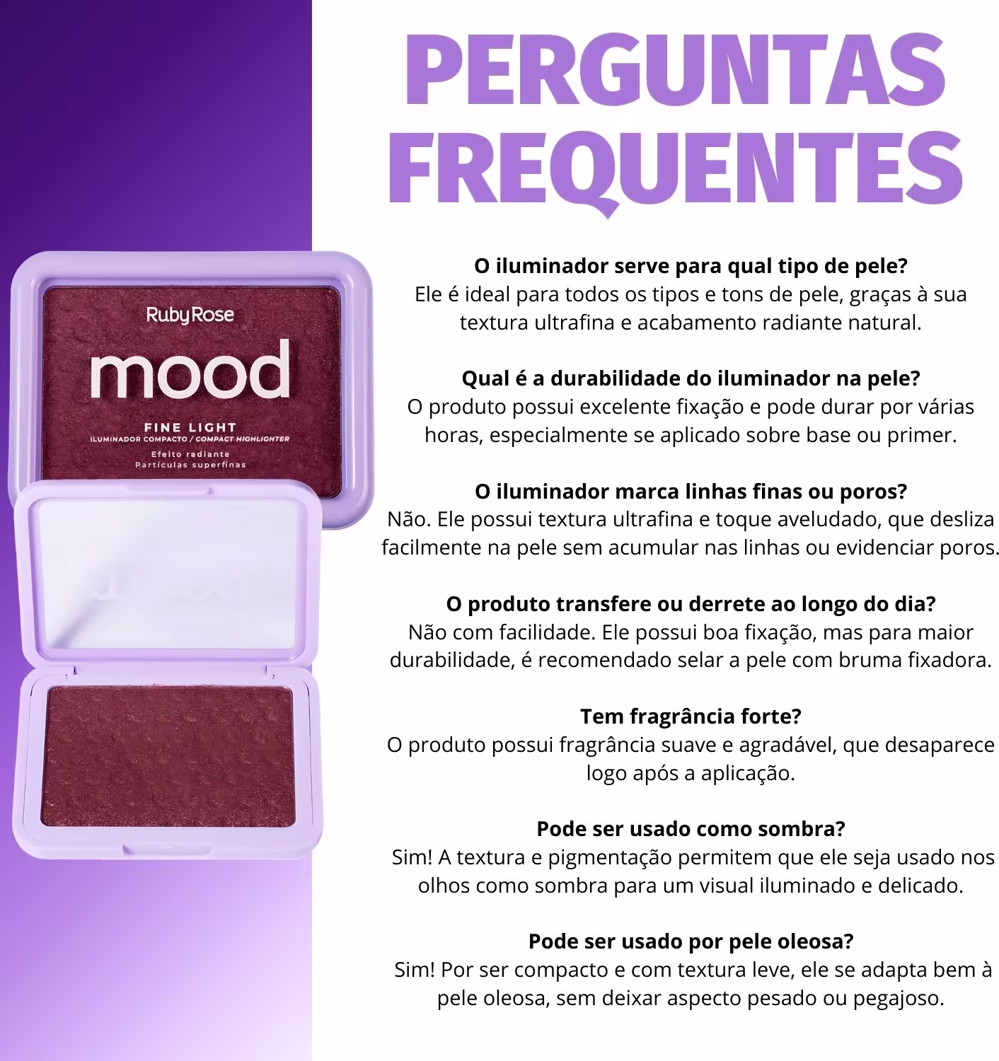 Não sei o CEPIluminador Compacto Ruby Rose Mood Fine Light Efeito Radiante Mlf08