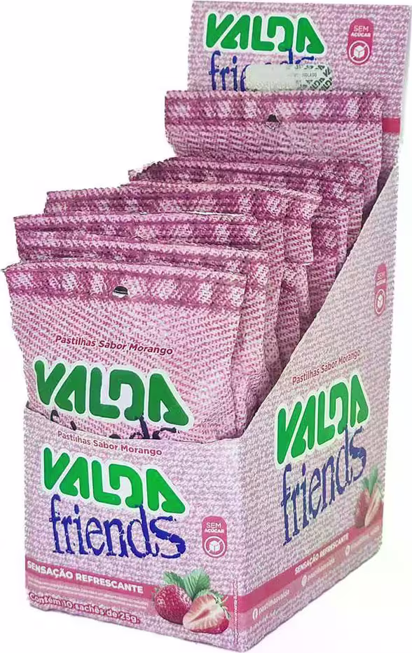 Não sei o CEPPastilha Valda Friends Morango Display Com 10 Sachês De 25g Cada