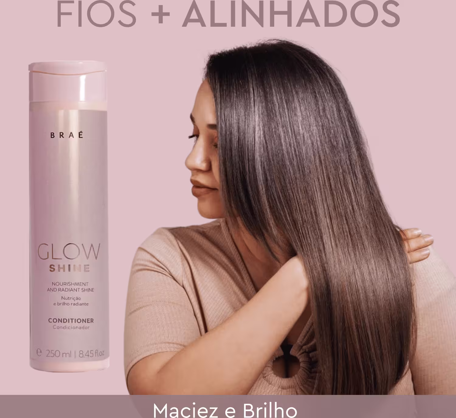 O Condicionador Braé Glow Shine entrega hidratação, nutrição e um brilho radiante aos cabelos. Sua fórmula foi desenvolvida para promover maciez, suavizar os fios e realçar o brilho natural, deixando os cabelos sedosos, alinhados e visivelmente mais saudáveis.