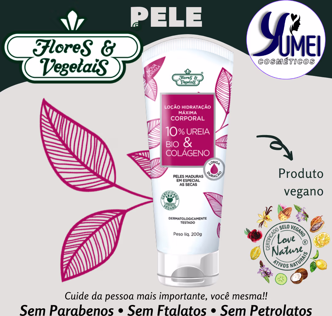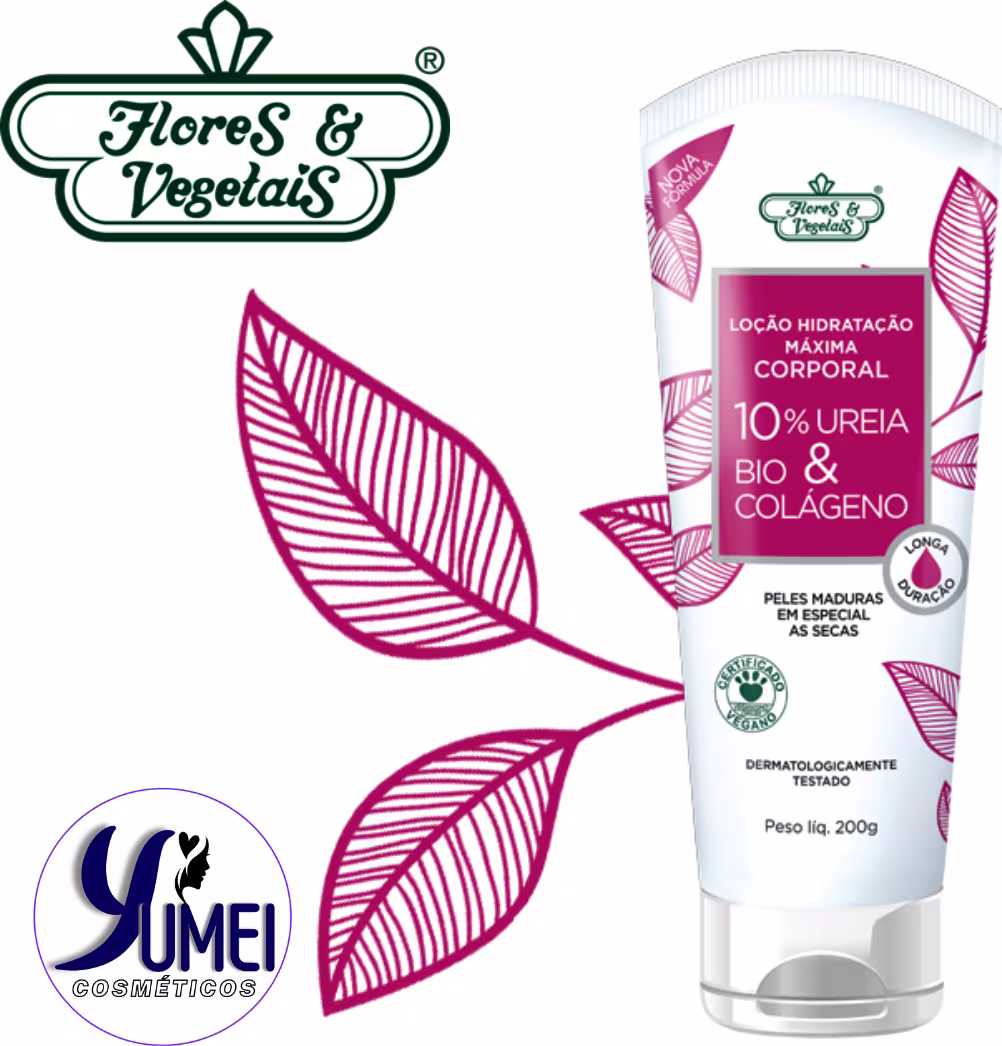 A Loção de Hidratação Máxima Flores e Vegetais é um produto de tratamento cosmético intensivo, contendo ureia a 10%, bio colágeno e óleo de coco. É indicado para os cuidados de peles maduras em especial as secas. A ureia é um potente hidratante que evita a perda de água pela pele. A Loção de Hidratação Máxima Flores e Vegetais, possui fórmula de textura leve, agradável ao toque e de rápida absorção que permite manter a pele hidratada por até 24h.