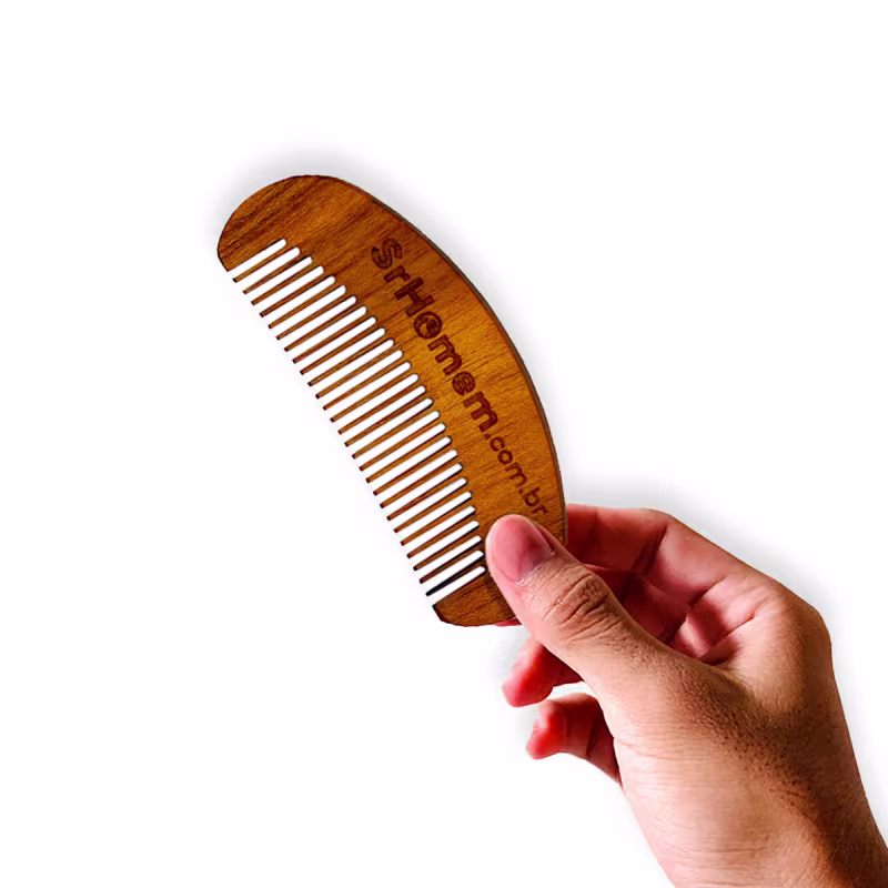 - Penteie a barba com o pente de madeira Don Alcides para alinhar e domar os fios;