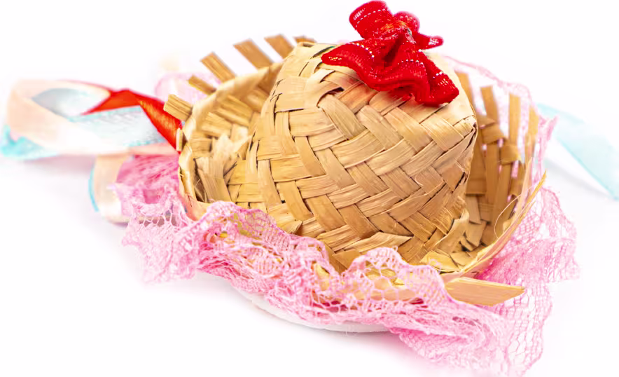 Cada peça é composta por uma charmosa presilha tipo bico de pato, firme e confortável, com aplicação de chapéus miniatura decorados com fitas coloridas e estampas tradicionais. Um acessório que une praticidade, segurança e muito estilo para quem deseja brilhar nas festas típicas.