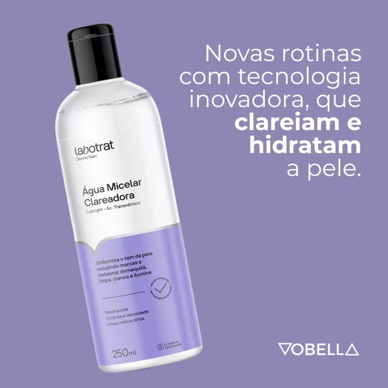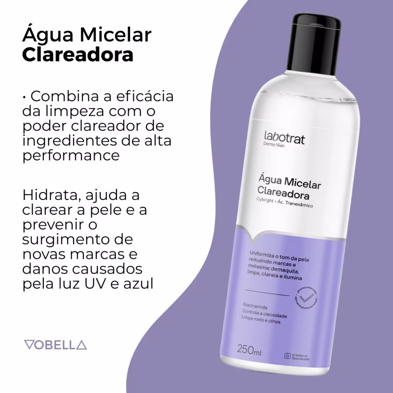 Sua pele merece esse cuidado! Leve agora a Água Micelar Clareadora Dermo Skin Hidrata Labotrat e experimente uma limpeza eficiente, hidratação e uma pele visivelmente mais iluminada todos os dias.