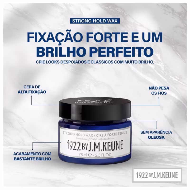 Não sei o CEPKeune 1922 Strong Hold Wax 100ml - Alta fixação com brilho! Crie looks clássicos e modernos com a cera modeladora Keune. Ideal para todos os tipos de cabelo.