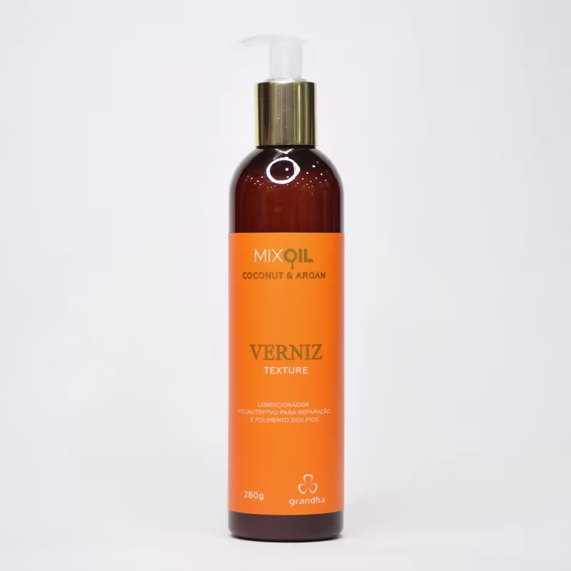 CONDICIONADOR VERNIZ TEXTURE MIX OIL COCONUT & ARGAN Máscara capilar hidratante com ampla capacidade polinutritiva e doadora de brilho. A sinergia dos óleos de coco e argan estabelece maior potencial antioxidante, em função das altas taxas de vitamina E e ácidos graxos essenciais, os quais diminuem o desgaste provocado por processos químicos e restabelecem a integridade dos cabelos. Não há contraindicações. Controle hidrolipídico dos fios. Brilho e sedosidade com ação antioxidante. Verniz Texture de Grandha é um condicionador polinutritivo para reparação e polimento dos fios. Toda a linha Mix Oil Coconut & Argan é ideal para o pós-praia ou piscina e também para cabelos fragilizados por processos químicos. O kit Mix Oil Coconut & Argan é rico em antioxidantes, pois conta com óleo de coco e óleo de argan em sua composição. Atua de forma a desacelerar o envelhecimento natural dos cabelos, proporcionando um brilho incrível, além do frescor do cheirinho de coco.